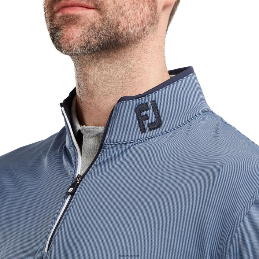 - superblødt jerseystrikket strækstof over hele tofarvet mikrostribemønster tofarvet halv lynlås konstruktion kontrastkrave og sideåbningsdetalje koordinerende krave og bagstykke fj logo er nemt pleje stof for at minimere rynker