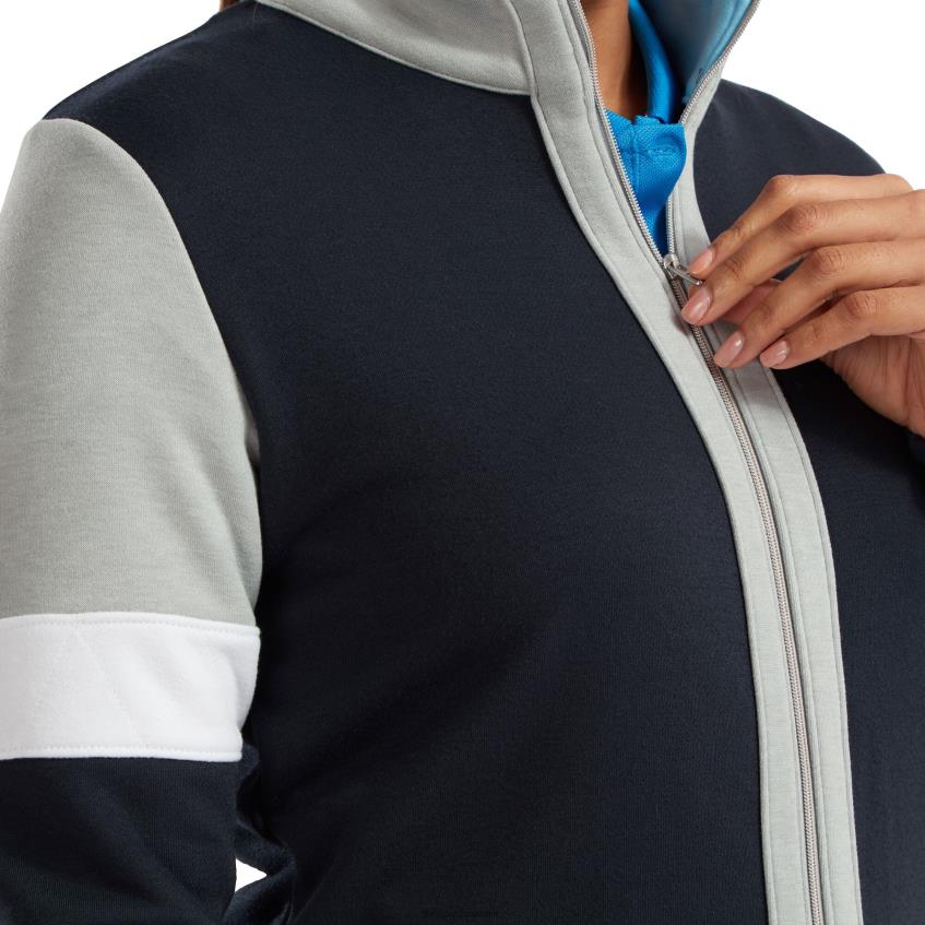 - superblødt fransk frottéstrikket stof flerfarvet blokeret mønster retro manipuleret søm på ærmet stribe fuld længde metal lynlås og træk tonalt bageste åg fj logo fugttransporterende teknologi trækker fugt væk fra kroppen