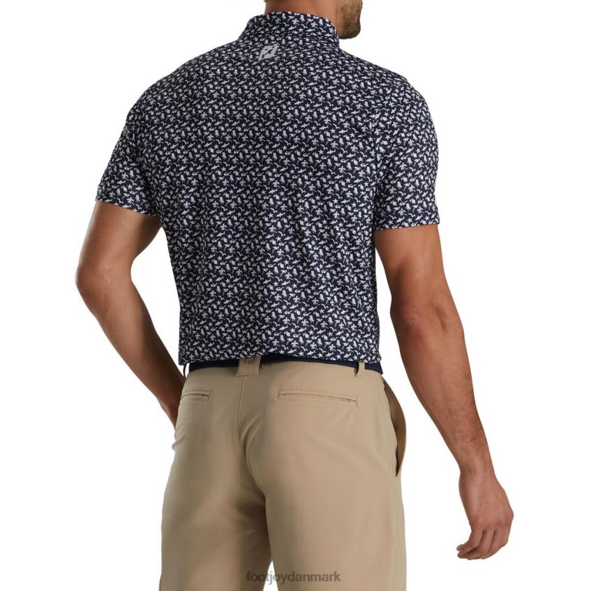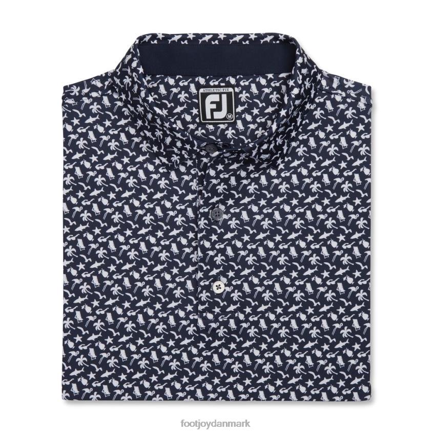 Footjoy navy-hvid atletisk pasform, lisle selvkrave med strandprint F42HB1824 marine-hvid