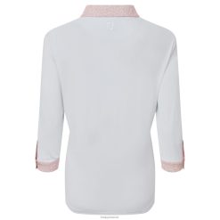- fj prodry stretch pique stof ensfarvet krop med tonal spot print krave, stolpe og manchetter 3/4 ærme konstruktion imiteret lomme på højre bryst dekorative sølv fj knapper fugttransporterende teknologi trækker fugt væk fra kroppen