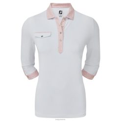 - fj prodry stretch pique stof ensfarvet krop med tonal spot print krave, stolpe og manchetter 3/4 ærme konstruktion imiteret lomme på højre bryst dekorative sølv fj knapper fugttransporterende teknologi trækker fugt væk fra kroppen